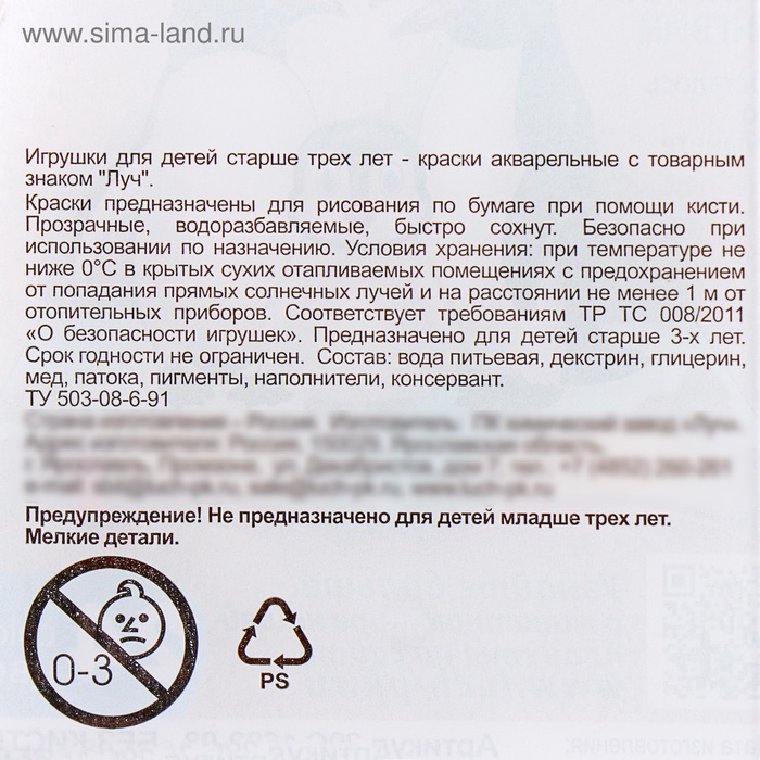 Акварель «Луч. ZOO», 24 цвета, без кисти 8 фото