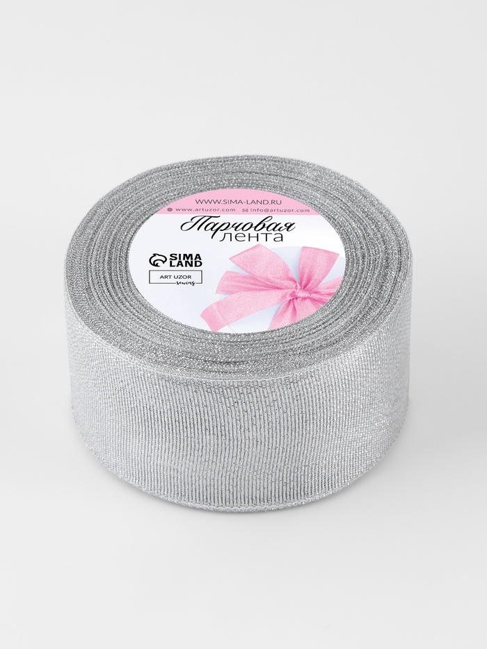 Лента парчовая, 50 мм, 23±1 м, цвет серебряный 4 фото
