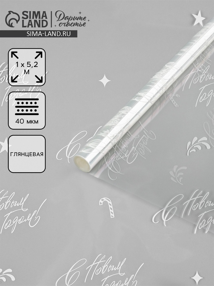 Плёнка глянцевая прозрачная «С Новым годом», 1×5.2 м 4 фото