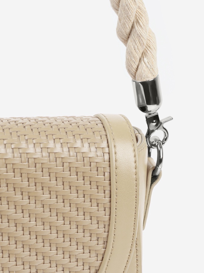 Ручка для сумки «Орнамент косичка», стропа, с карабинами, 139±3×3.8 см, бежевая, белая, чёрная 7 фото
