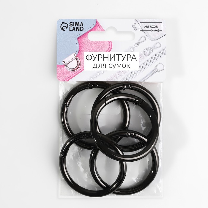 Кольцо-карабин, d=38/48 мм, толщина - 5 мм, 5 шт., цвет чёрный никель 4 фото