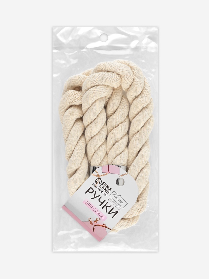 Ручка для сумки, канат, 60×1.5 см, с карабинами, цвет кремовый, серебряный 10 фото