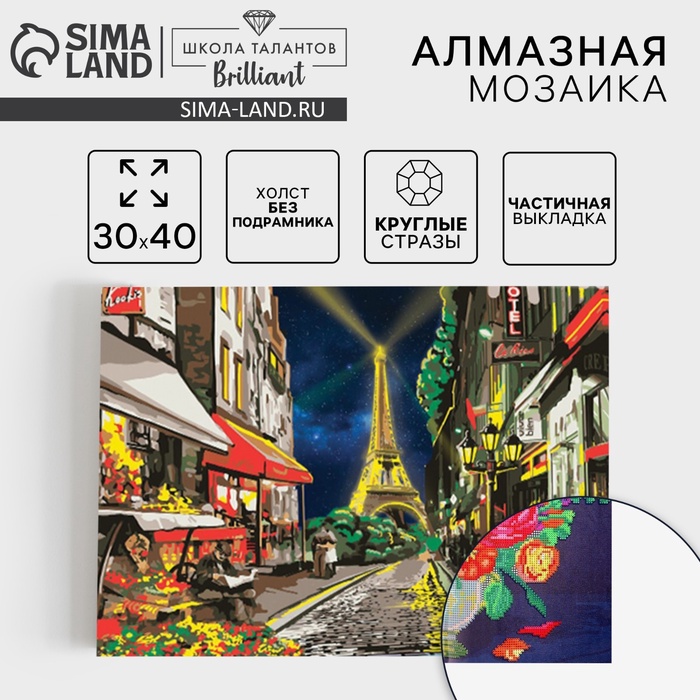Алмазная мозаика с частичным заполнением «Париж», 30×40 см, холст, ёмкость. Набор для творчества 7 фото