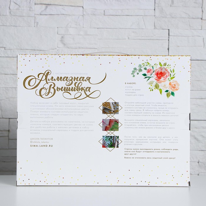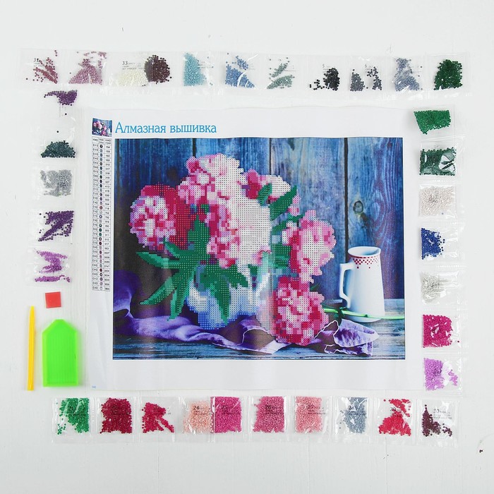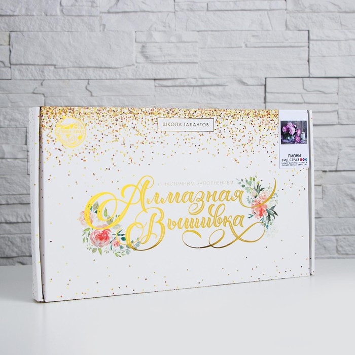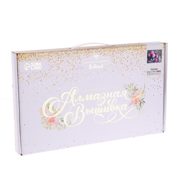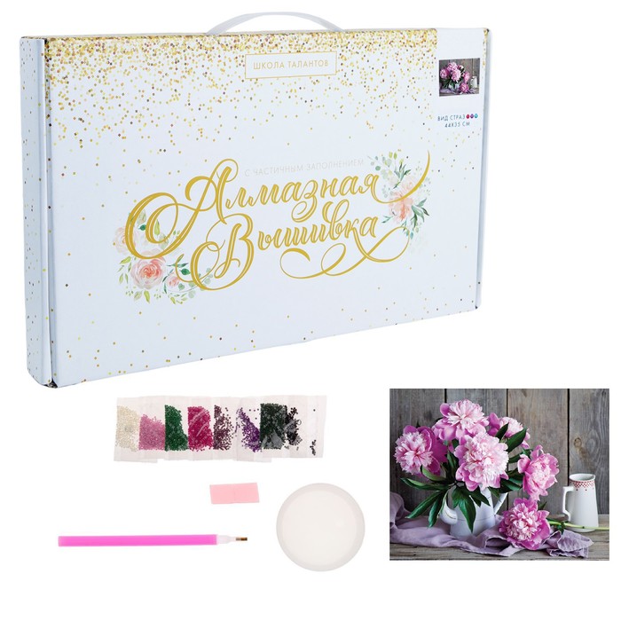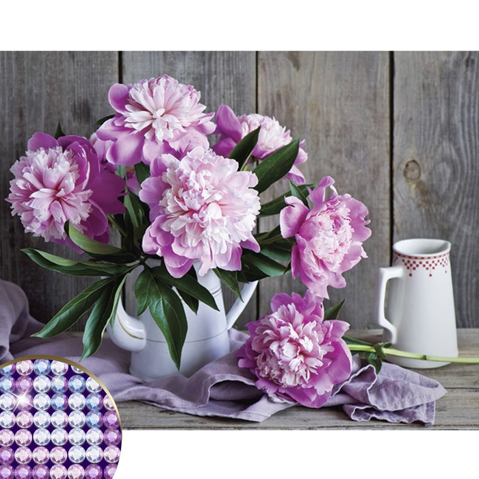 Алмазная мозаика с частичным заполнением на холсте «Пионы», 40×30 см 10 фото