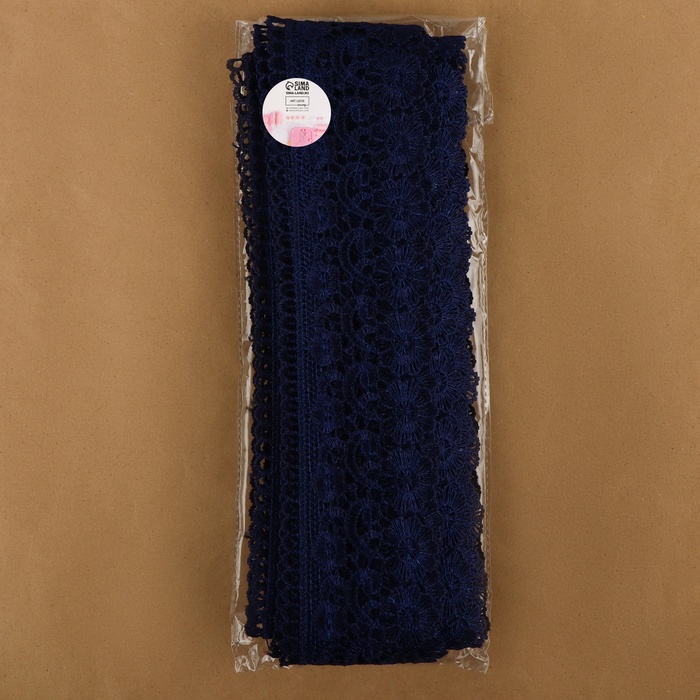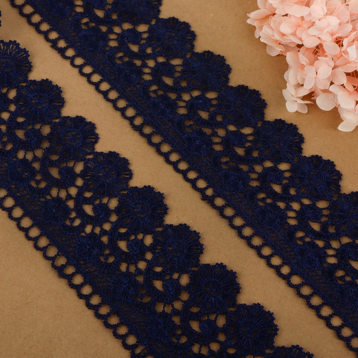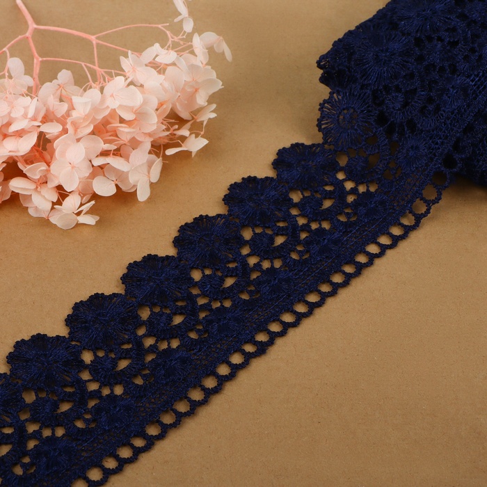 Кружево гипюровое, 60 мм, 6.8±0.5 м, тёмно-синее 3 фото