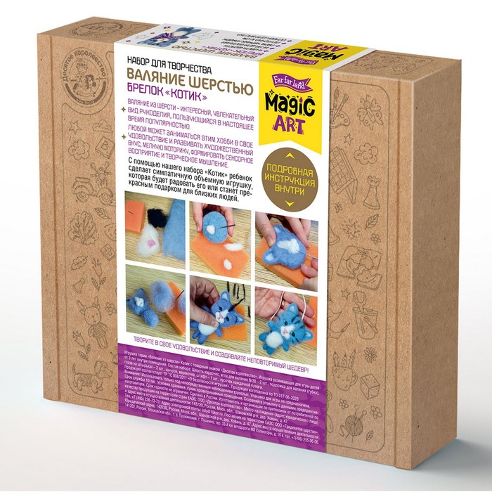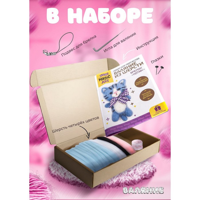 Набор для творчества. Валяние шерстью, брелок «Котик» 4 цвета 5 фото
