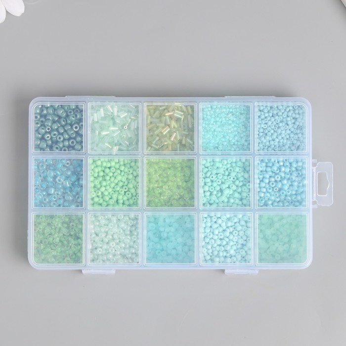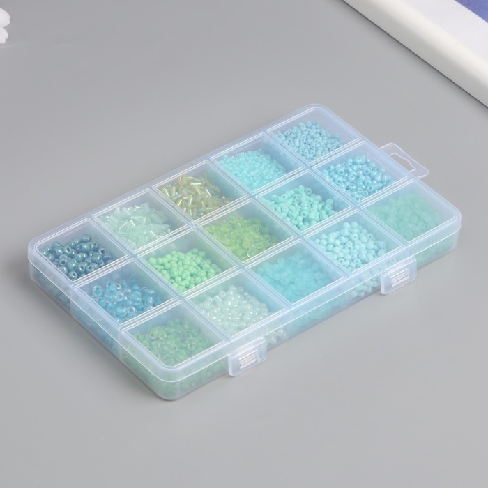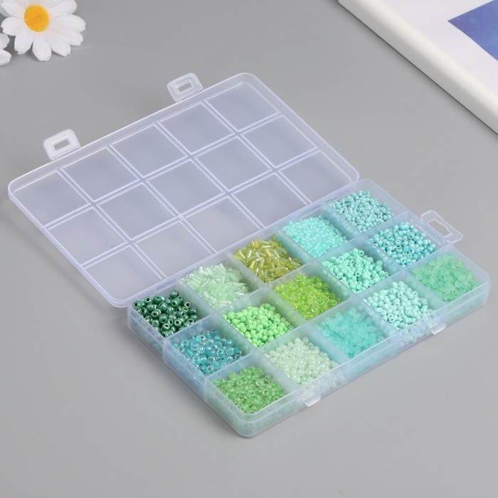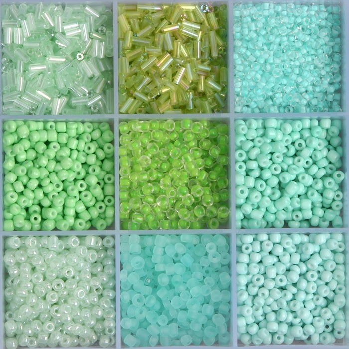 Бисер стекло 6/0, 8/0, 12/0 в шкатулке «Зелёный», стеклярус, 15.5×9.5×1.6 см 4 фото