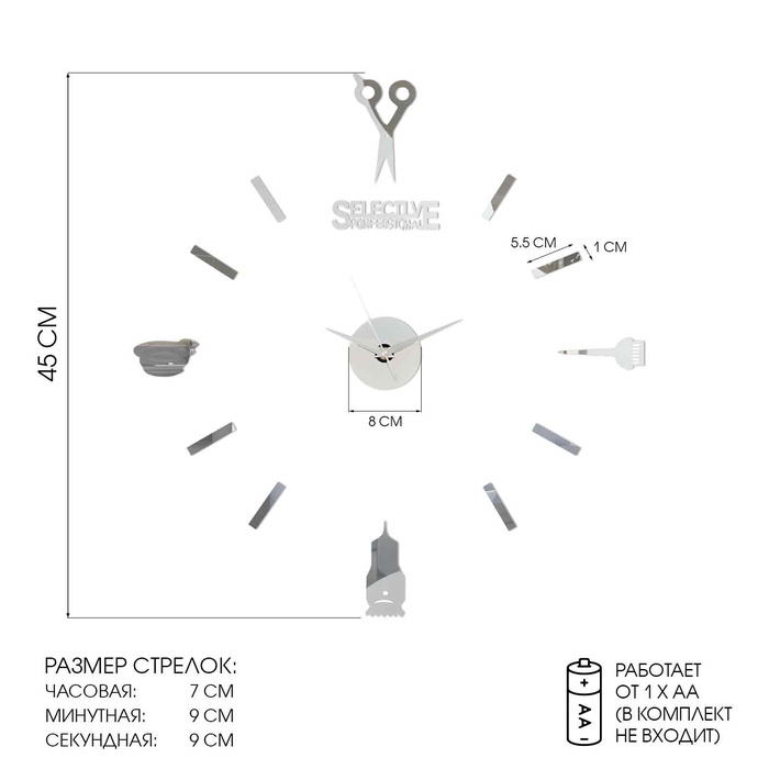 Часы настенные интерьерные большие, 3d "Парикмахер", наклейка, d-45 см 4 фото