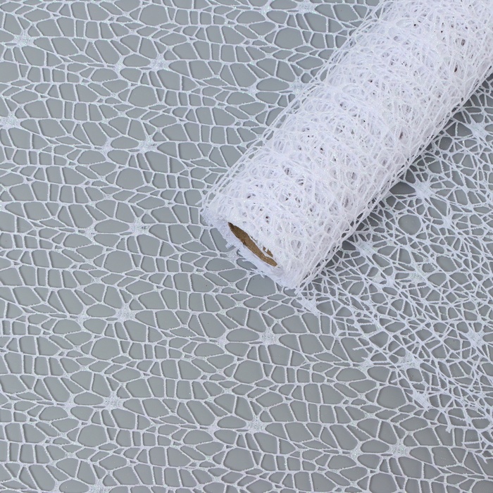 Упаковка для цветов «Паутинка с глиттером» белая 48 см × 4.5 м 5 фото