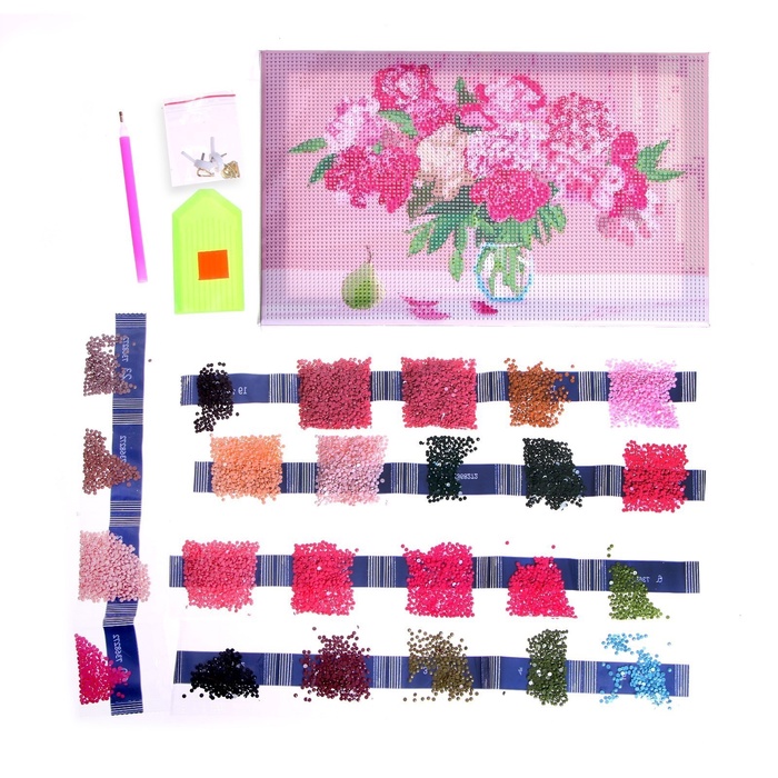 УЦЕНКА Алмазная мозаика на раме с полным заполнением «Букет пионов», 20×30 см 10 фото