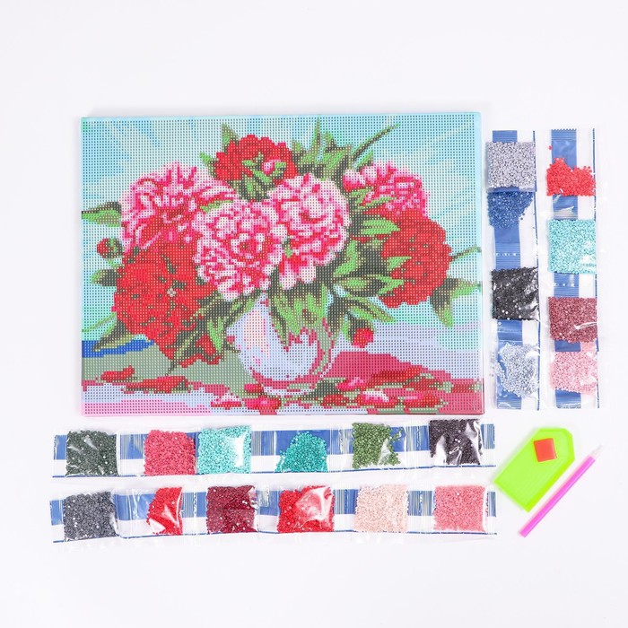 Алмазная мозаика с полным заполнением на подрамнике «Пионы», 30×40 см 5 фото