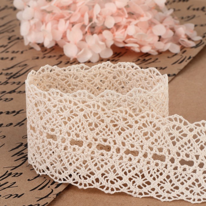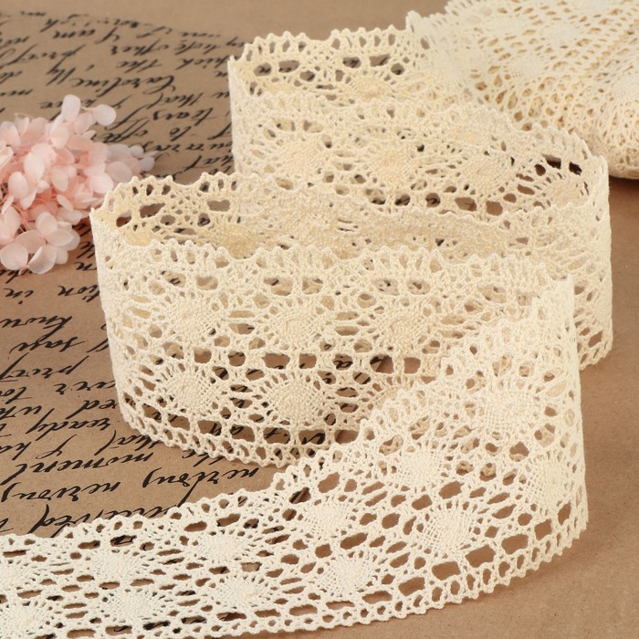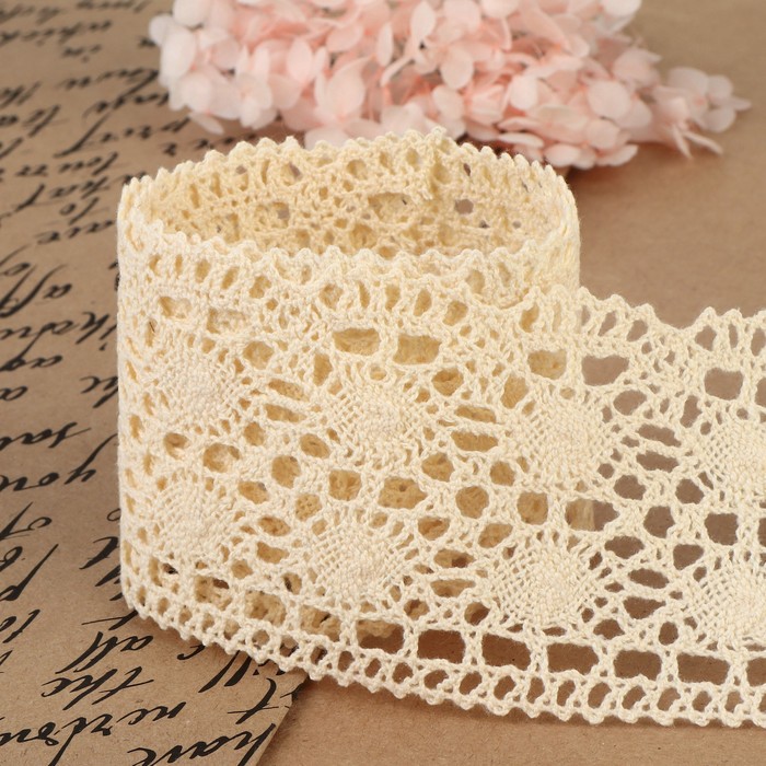 Кружево вязаное, 45 мм, 10±1 м, бежевое 4 фото