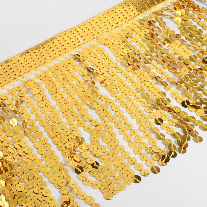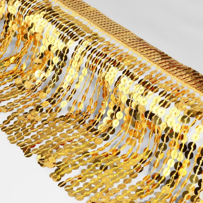 Тесьма с пайетками «Бахрома», d=6 мм, 16 см, 4.5±0.5 м, цвет золотой 3 фото