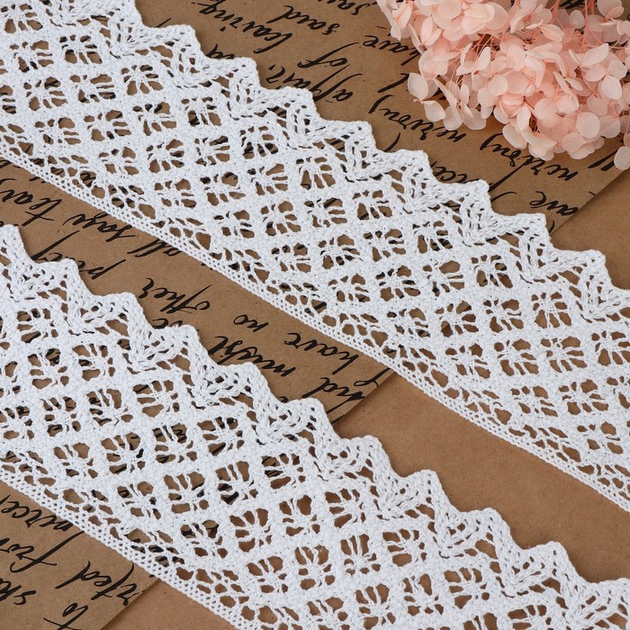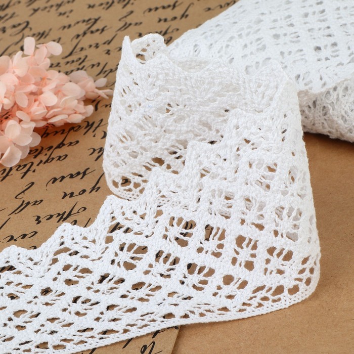 Кружево вязаное, 80 мм × 10 ± 1 м, цвет белый 4 фото