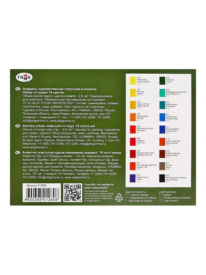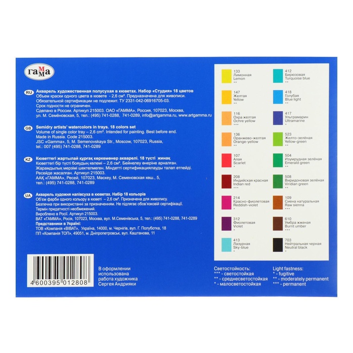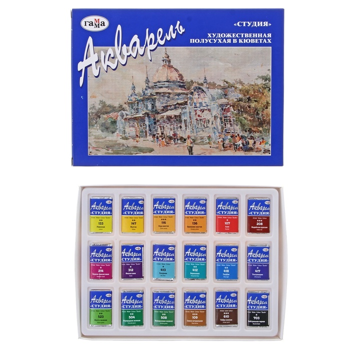 Акварель художественная в кюветах «Гамма. Студия», 18 цветов × 2.5 мл 6 фото