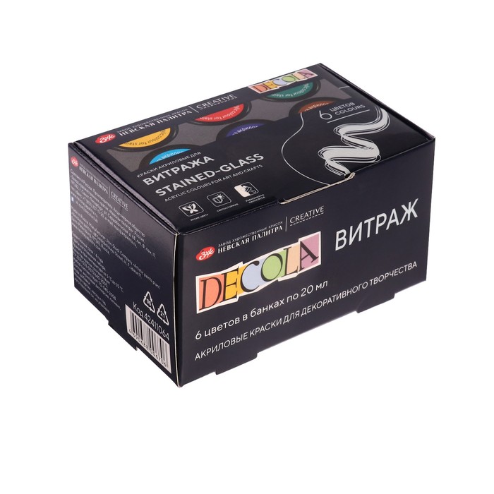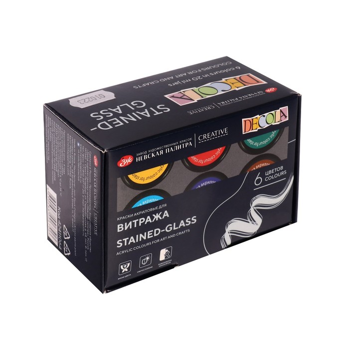 Набор витражных красок по стеклу Decola, 6 цветов × 20 мл 6 фото