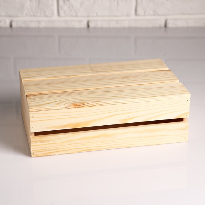 Подарочный ящик, 30×20×10 см, деревянный, с реечной крышкой 2 фото