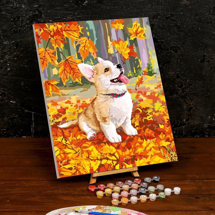Картина по номерам на холсте с подрамником "Корги в осенней листве" 40*50 см 6 фото