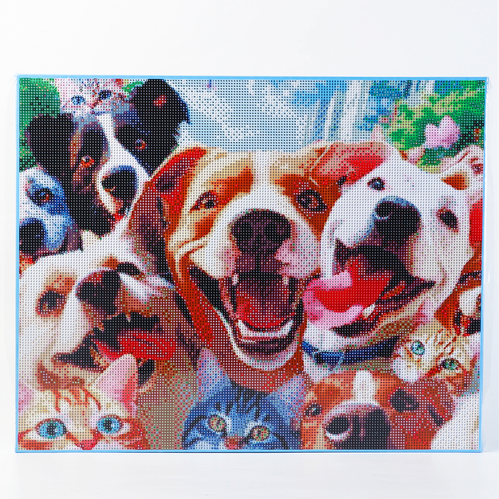 Алмазная мозаика с полным заполнением на холсте с подрамником «Веселые животные», 40×50 см 7 фото