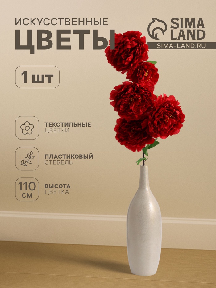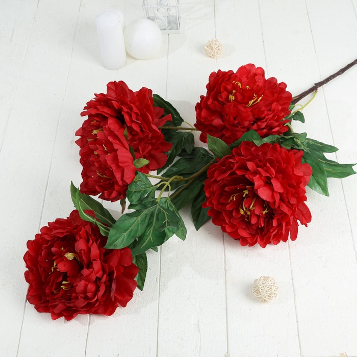 Цветы искусственные «Пион кустовой», 5 бутонов, 15×110 см, красные 6 фото