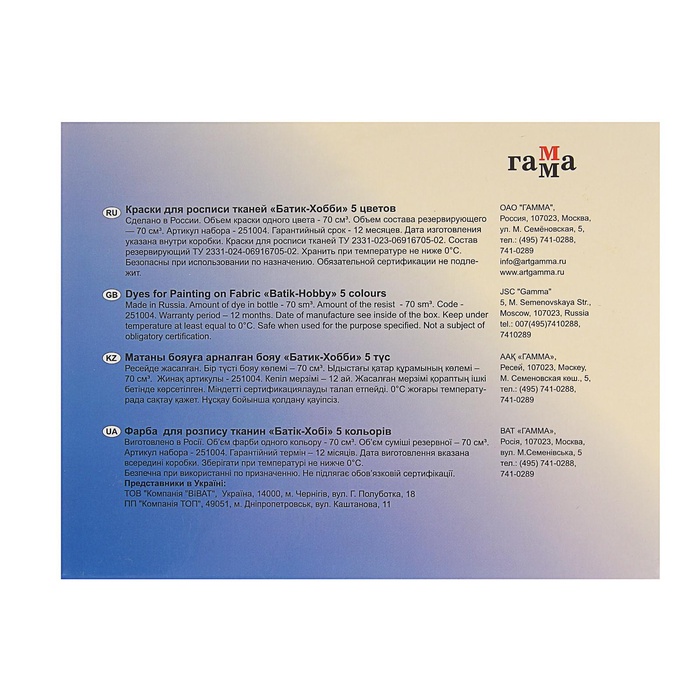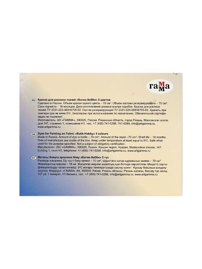 УЦЕНКА Краска по ткани набор 5цв*70 мл Гамма «Батик-Хобби» +резерв к/к 5 фото