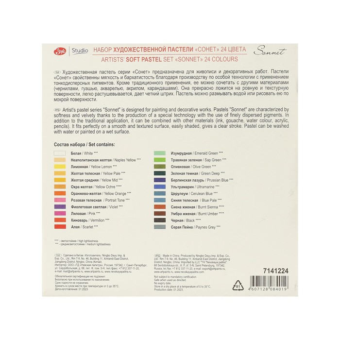 Пастель сухая ЗХК «Сонет», 24 цвета, Soft, d=8 мм/L-60 мм, круглое сечение, художественная 8 фото