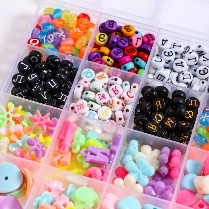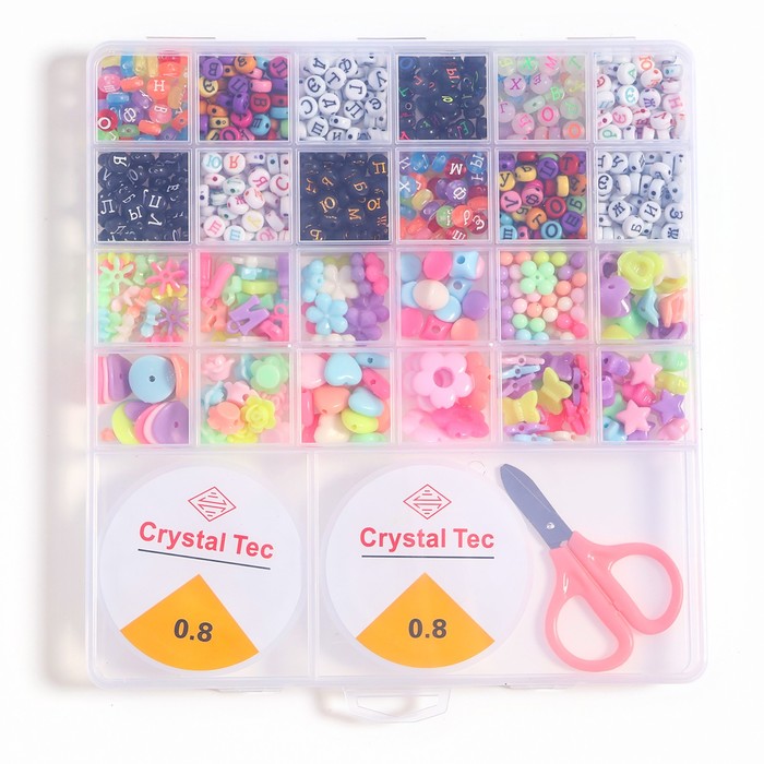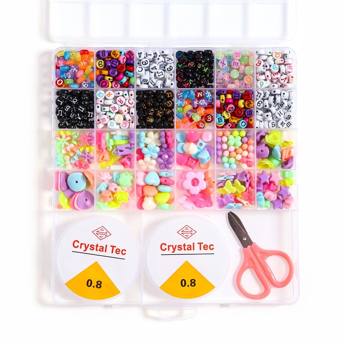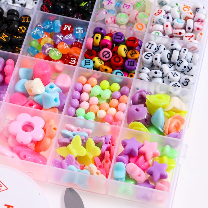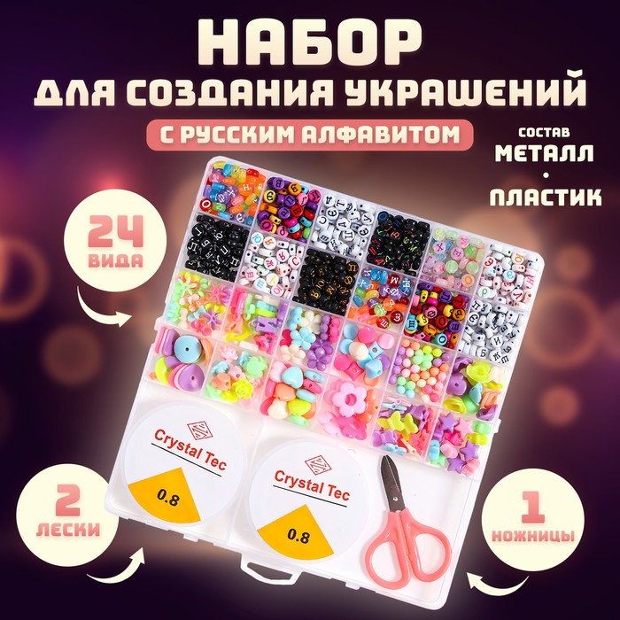 Набор для создания украшений с русским алфавитом, 24 вида бусин, 2 лески, ножницы 10 фото