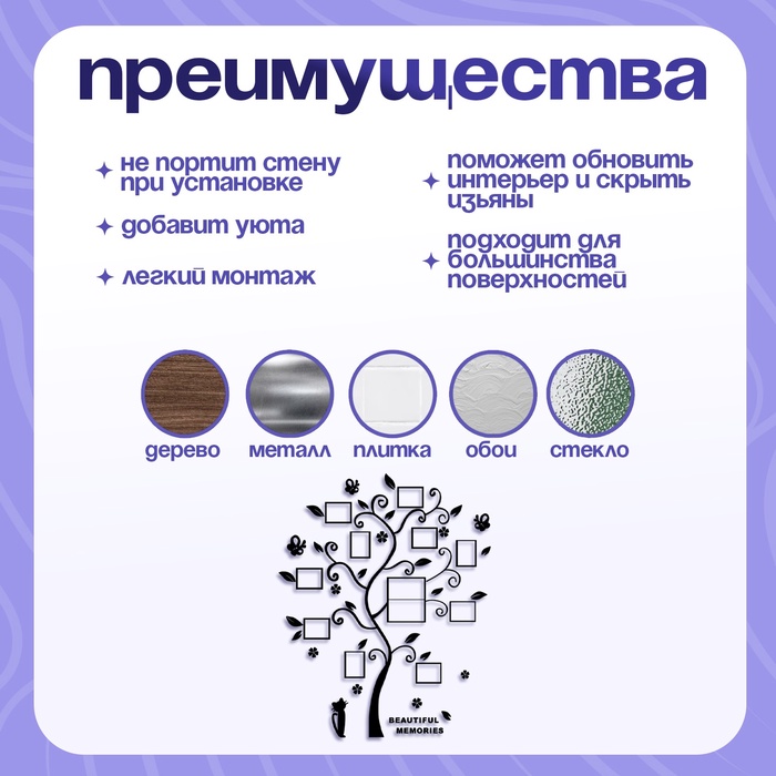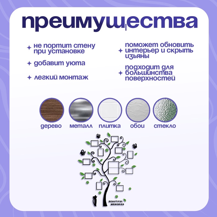 Наклейка интерьерная с фоторамками TAKE IT EASY «Воспоминания», декор на стену, панно 130×106 см 7 фото