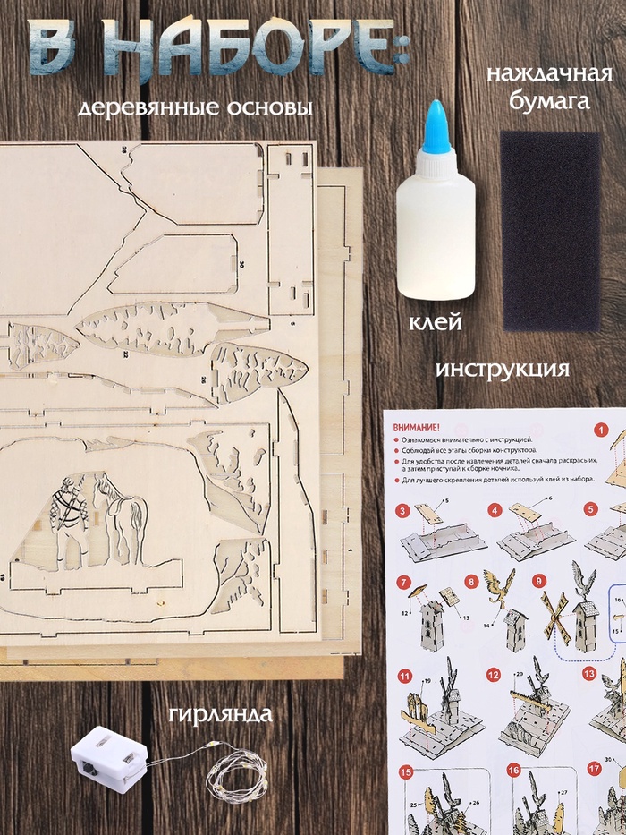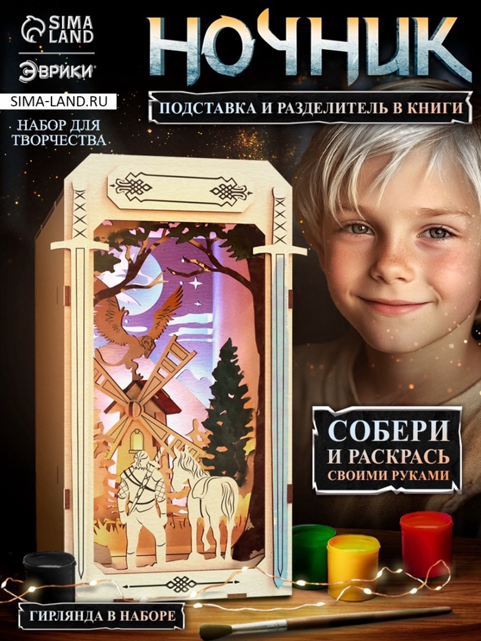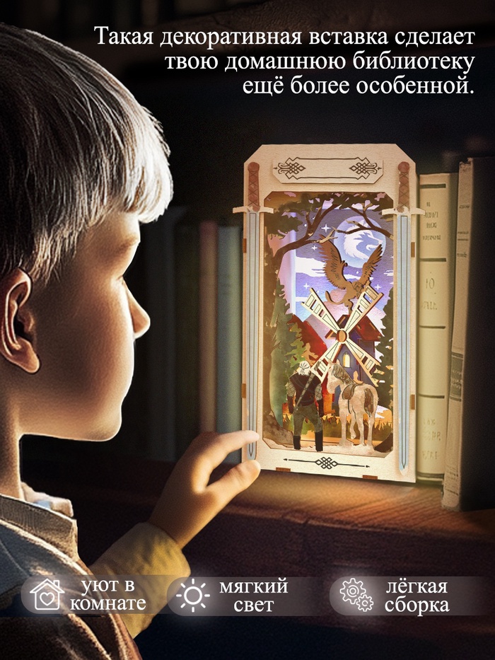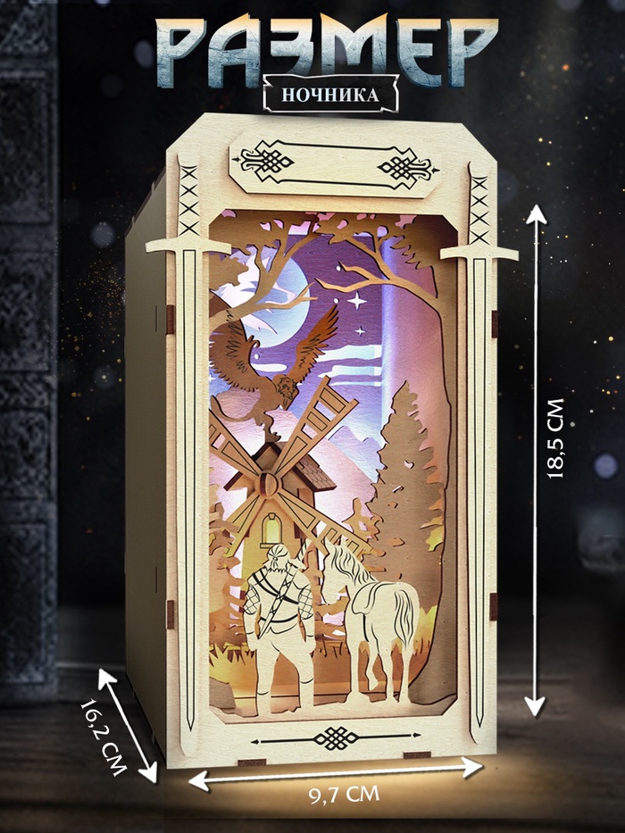 Ночник - конструктор своими руками из дерева «Тёмный воин», подставка - разделитель для книг 6 фото
