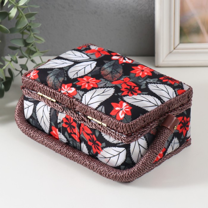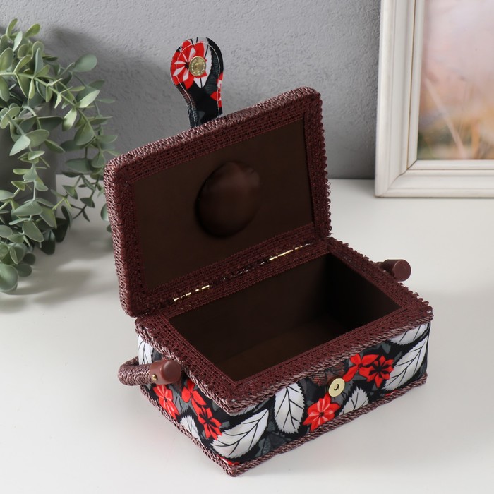 Шкатулка для рукоделия и шитья «Пуансеттия на чёрном», хранение ниток, иголок, мелочи, 18×12×9.5 см 4 фото