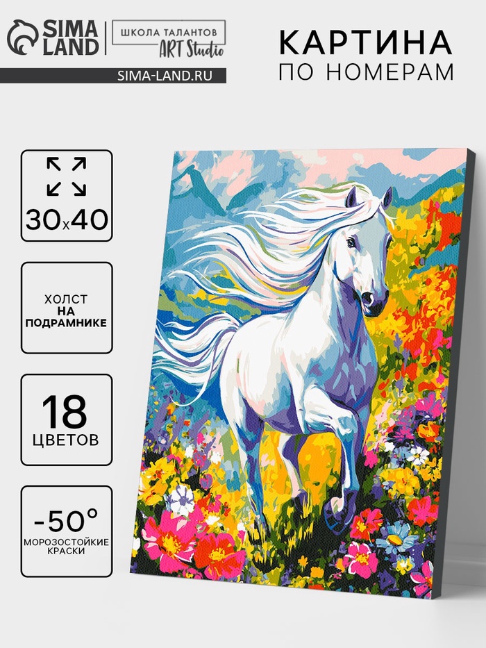 Картина по номерам на холсте «Белый конь» 30×40 см 9 фото