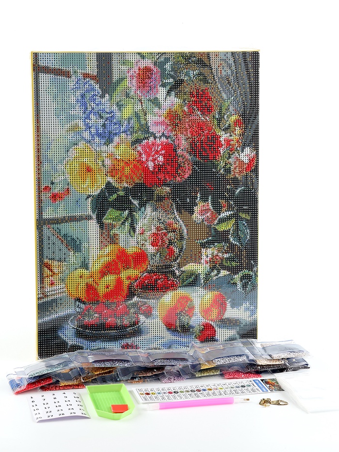 УЦЕНКА Алмазная вышивка полное заполнение «Цветы», на раме, 40×50 см 8 фото