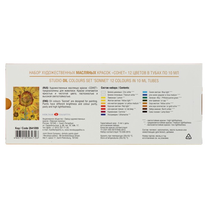Краска масляная художественная, набор 12 цветов × 10 мл, ЗХК «Сонет» 3 фото