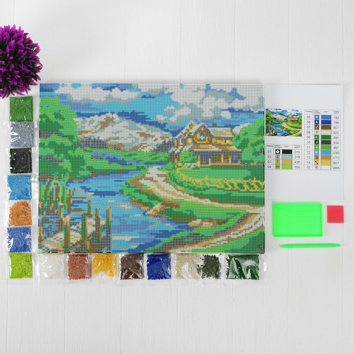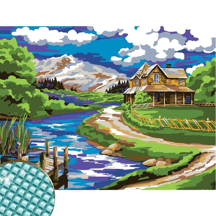 УЦЕНКА Алмазная вышивка с полным заполнением на раме «Домик у реки» 30×40 см 10 фото