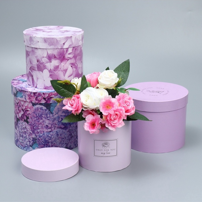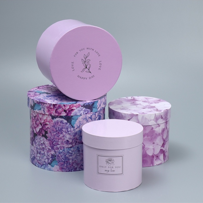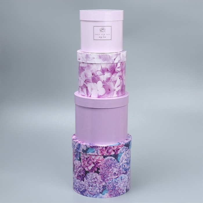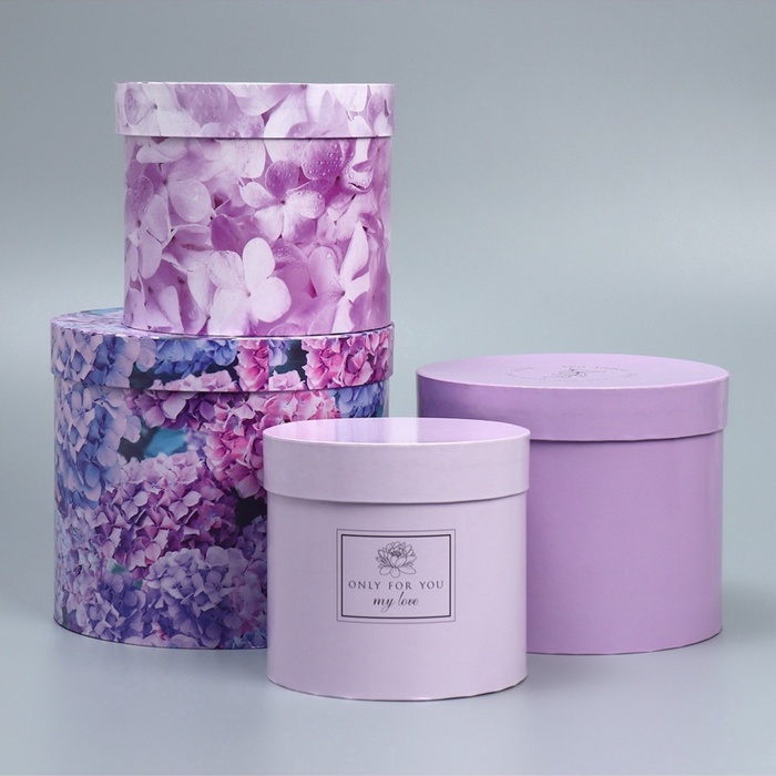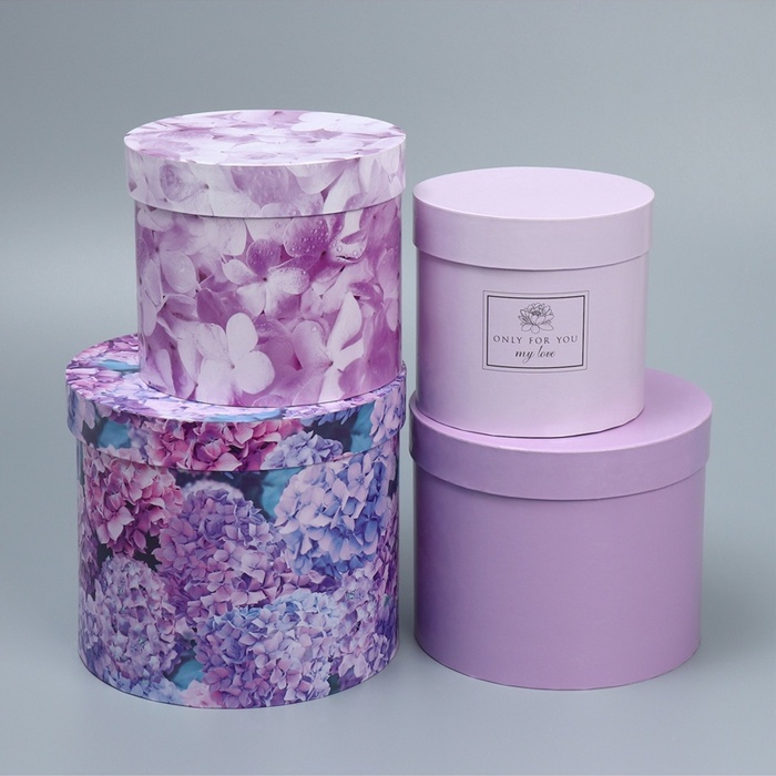 Набор коробок для цветов 4 в 1, упаковка подарочная, «Лаванда», 14×14×13 см - 20×20×17.5 см 10 фото