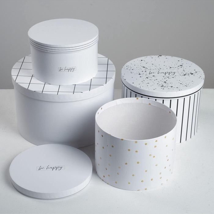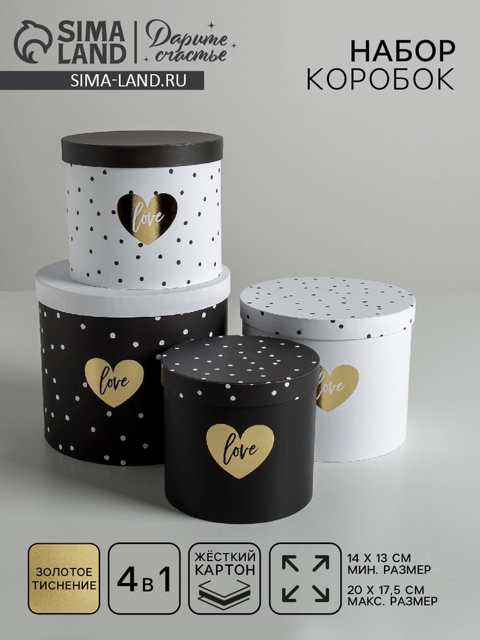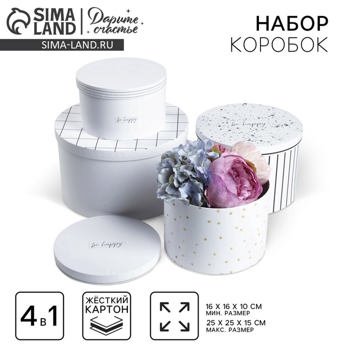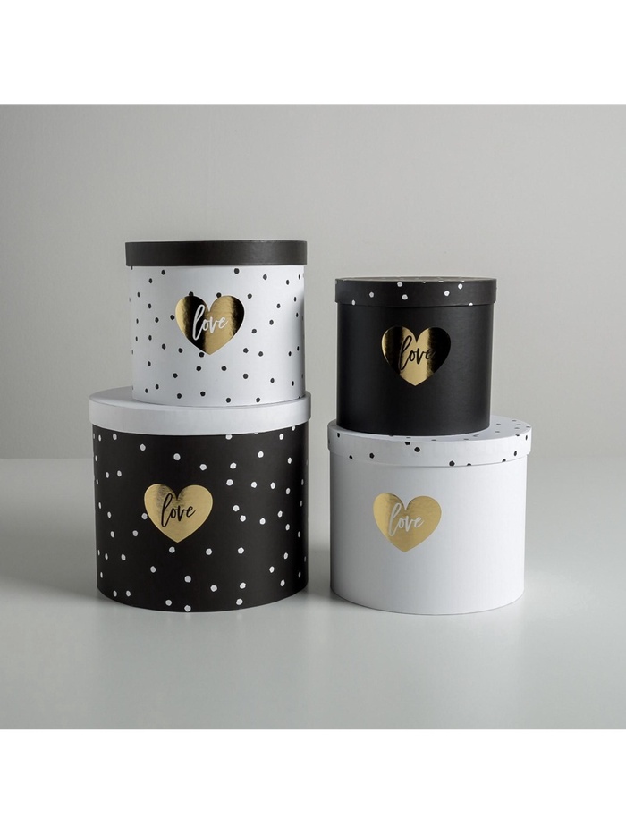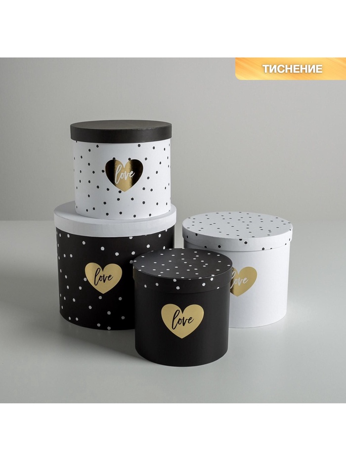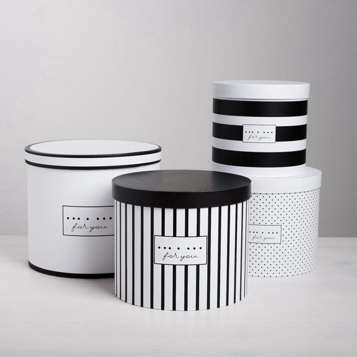 Набор коробок для цветов 4 в 1, упаковка подарочная, «Чёрно-белый», 14×14×13 см - 20×20×17.5 см 10 фото