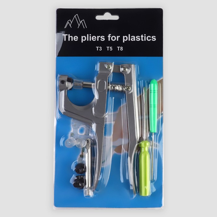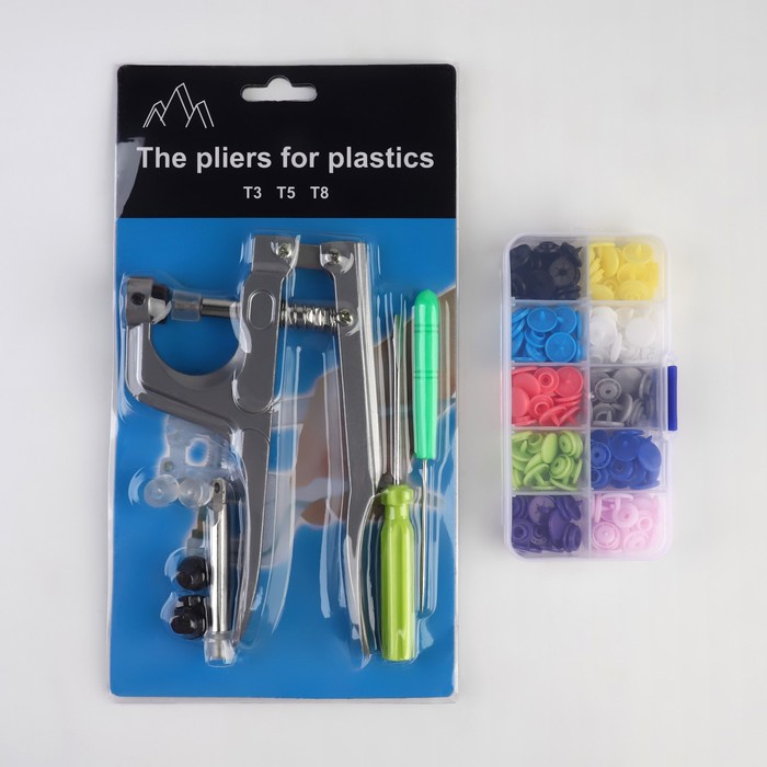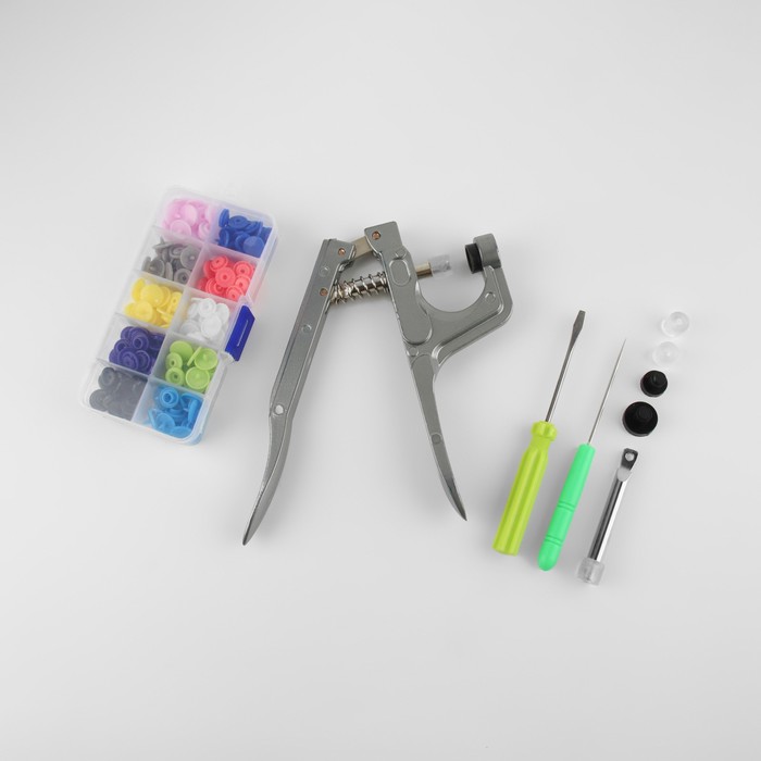 Набор для установки пластиковых кнопок: кнопки, d=12 мм, 50 шт., щипцы, шило, отвёртка, в органайзере 8 фото