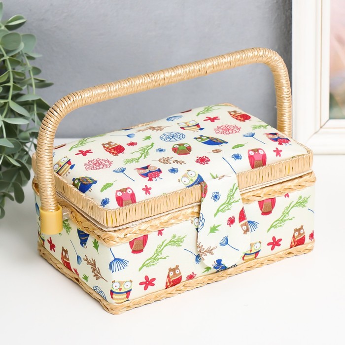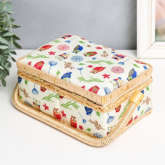 Шкатулка для рукоделия "Нарисованные совушки" 9,5х19,5х13 см 6 фото