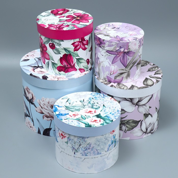 Набор коробок для цветов 4 в 1, упаковка подарочная, «Нежные цветы», 14×14×13 см - 20×20×17.5 см 10 фото