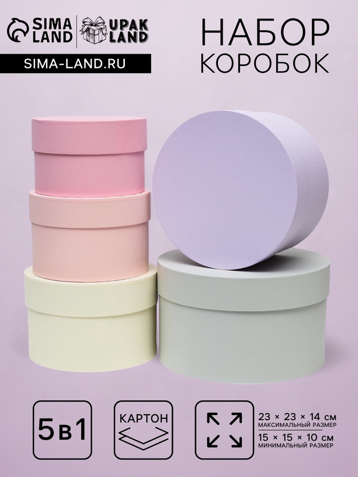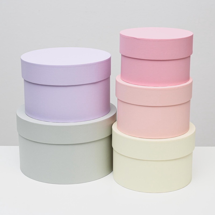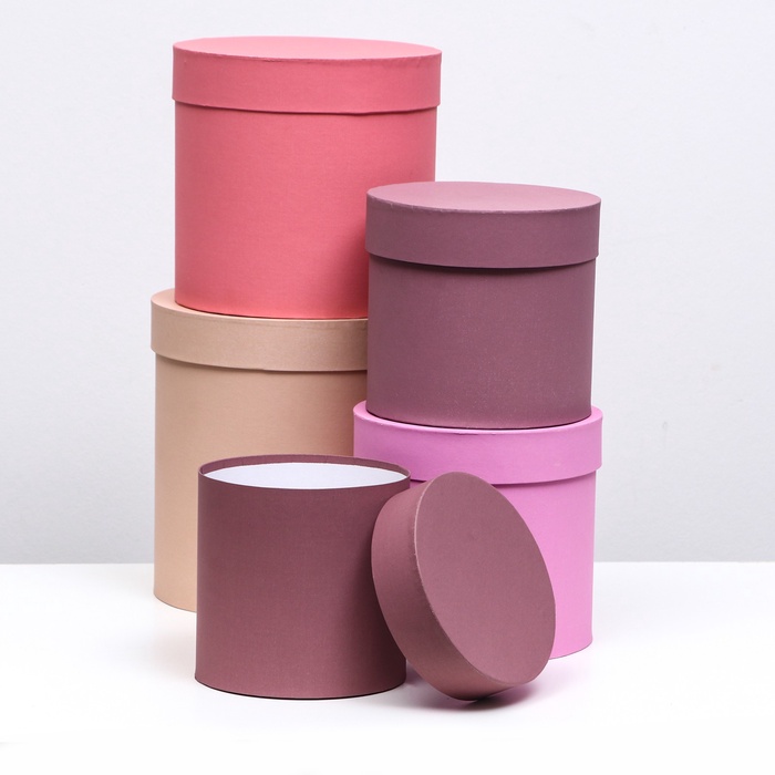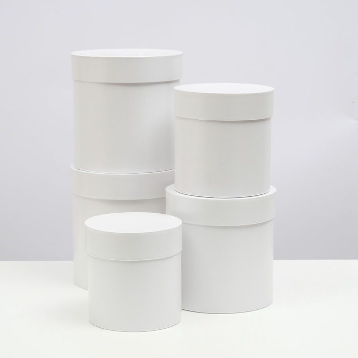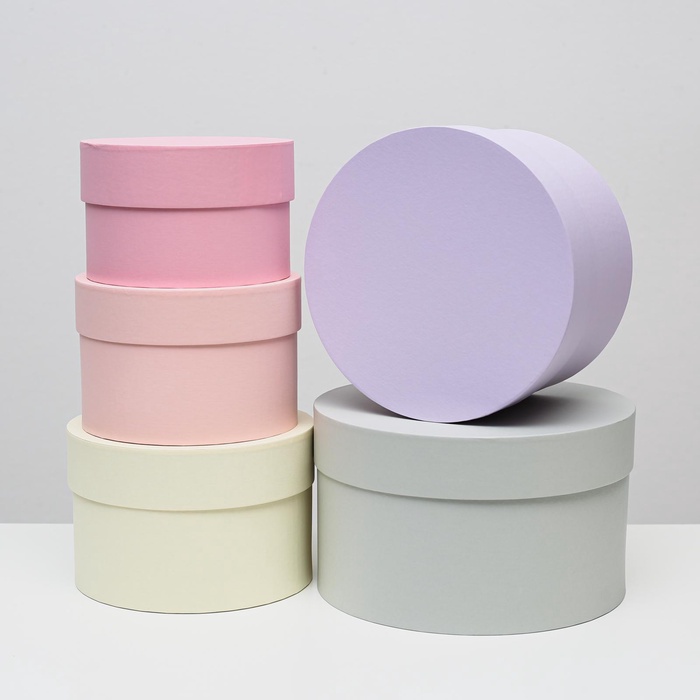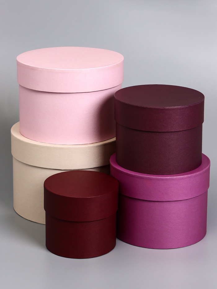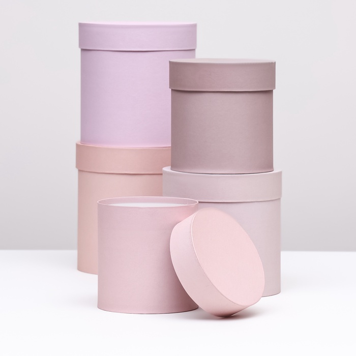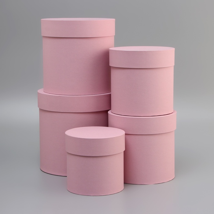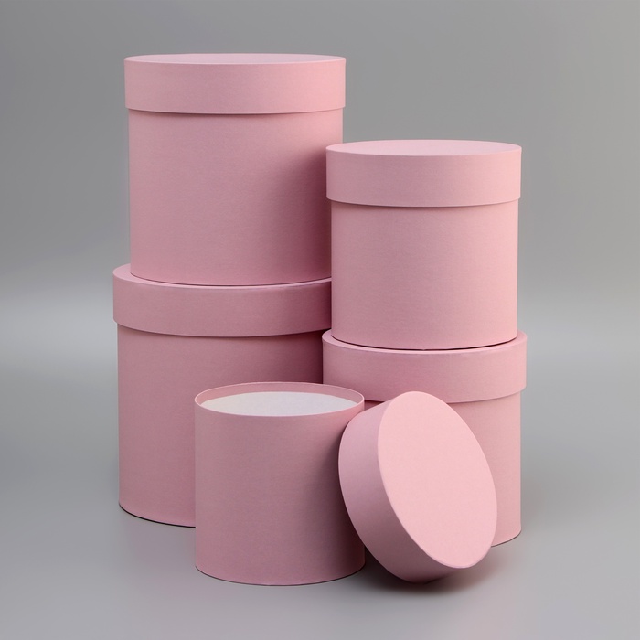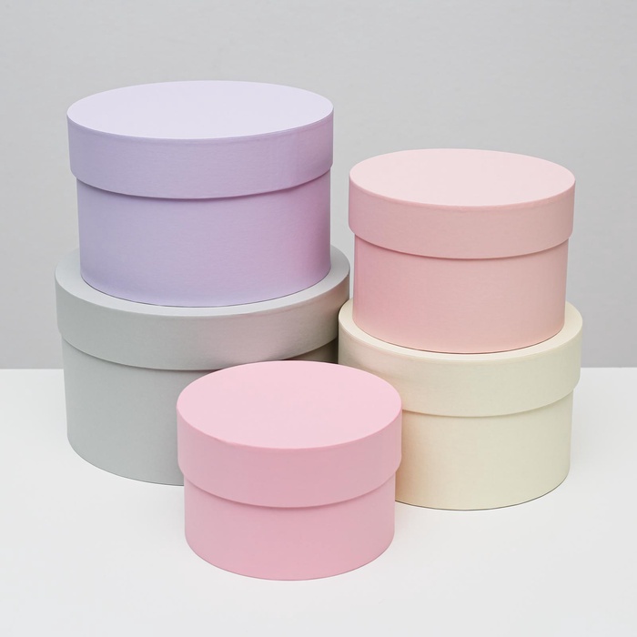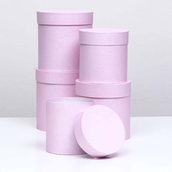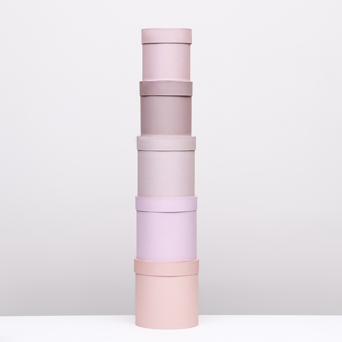 Набор круглых подарочных коробок 5 в 1 «Пудра», 20×20×20‒13.5×13.5×13.5 см 6 фото
