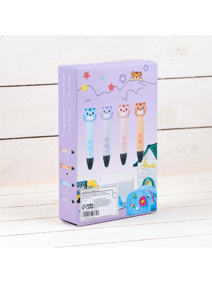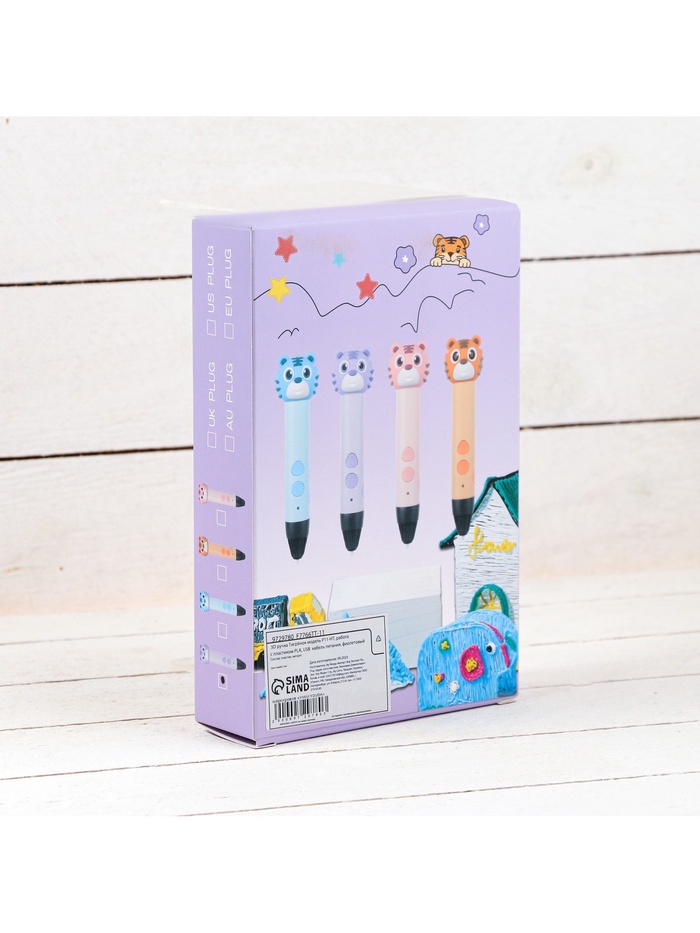 3D ручка Тигрёнок, работа с пластиком PLA, USB кабель питания, фиолетовая 10 фото