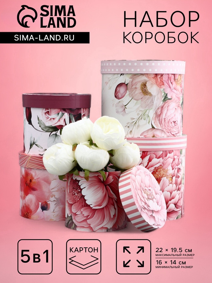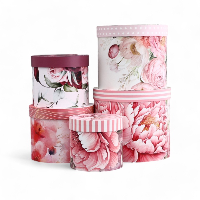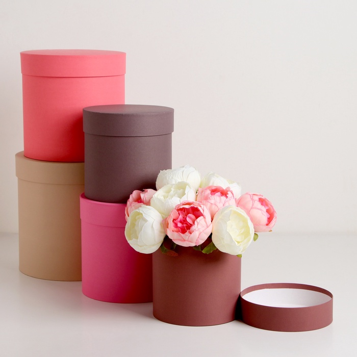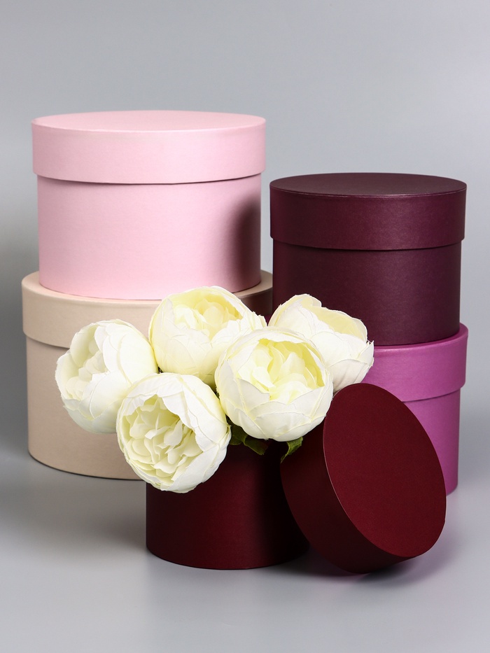 Набор шляпных коробок для цветов 5 в 1, упаковка подарочная, «Бутон», 16×14 см - 22×19.5 см 10 фото