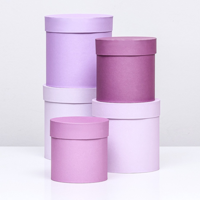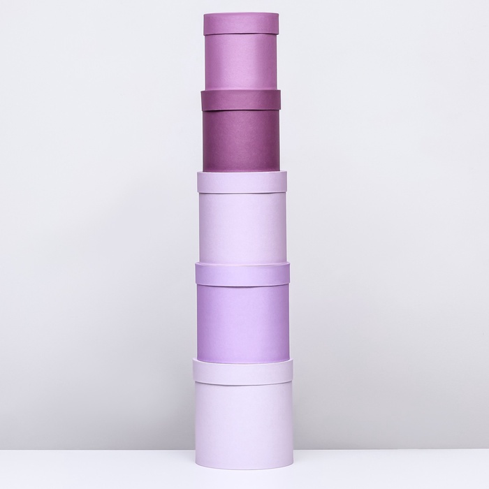 Набор круглых подарочных коробок 5 в 1« Лаванда», 20×19×14 - 15×15×10 см 5 фото