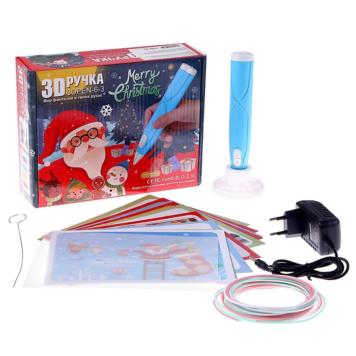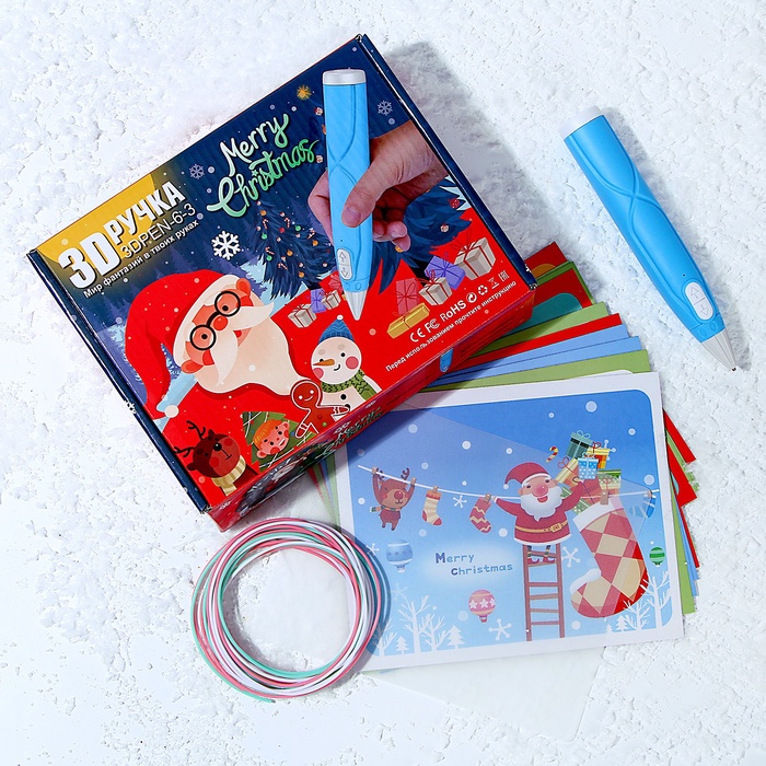 УЦЕНКА 3D ручка "Новый год" набор PСL пластика, мод. PN005, цвет голубой 8 фото