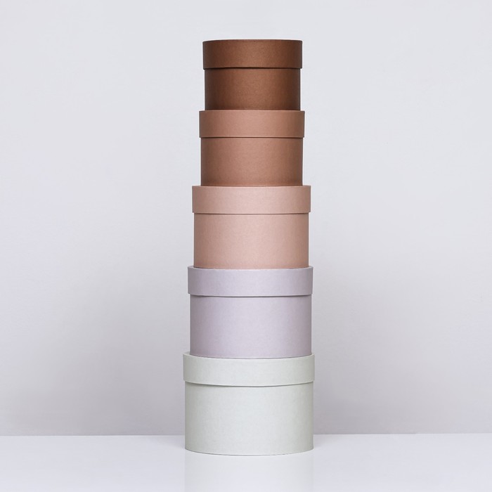 Набор круглых коробок 5 в 1 «Нюд», 20×20×20 - 11×11×11 см 5 фото