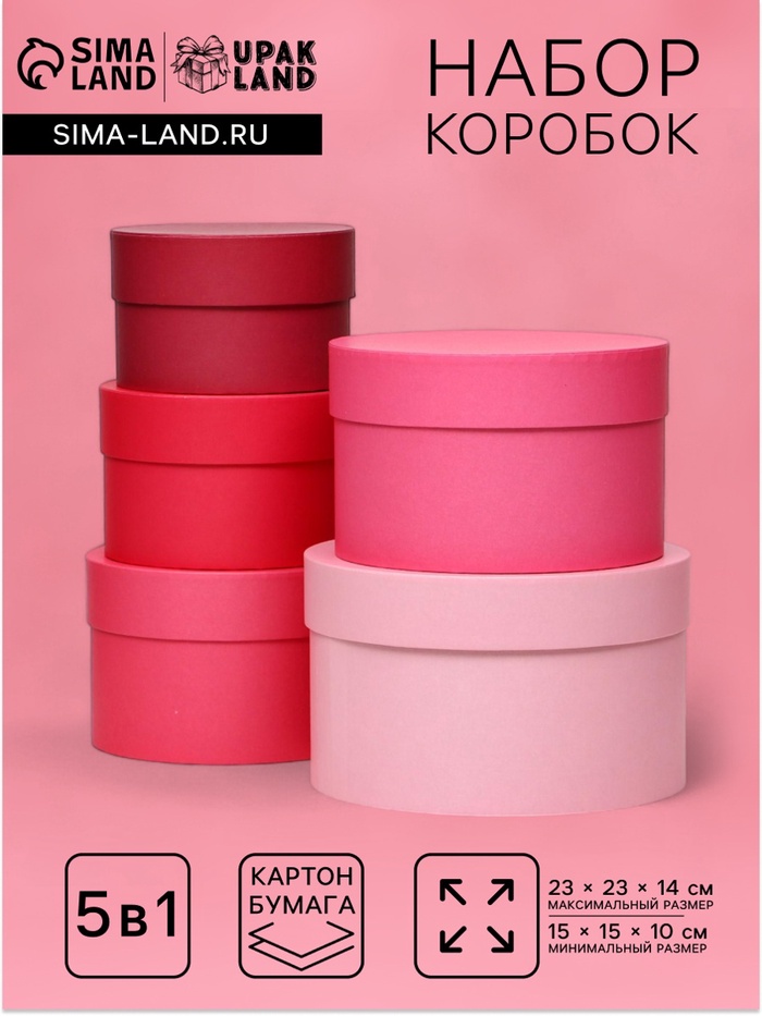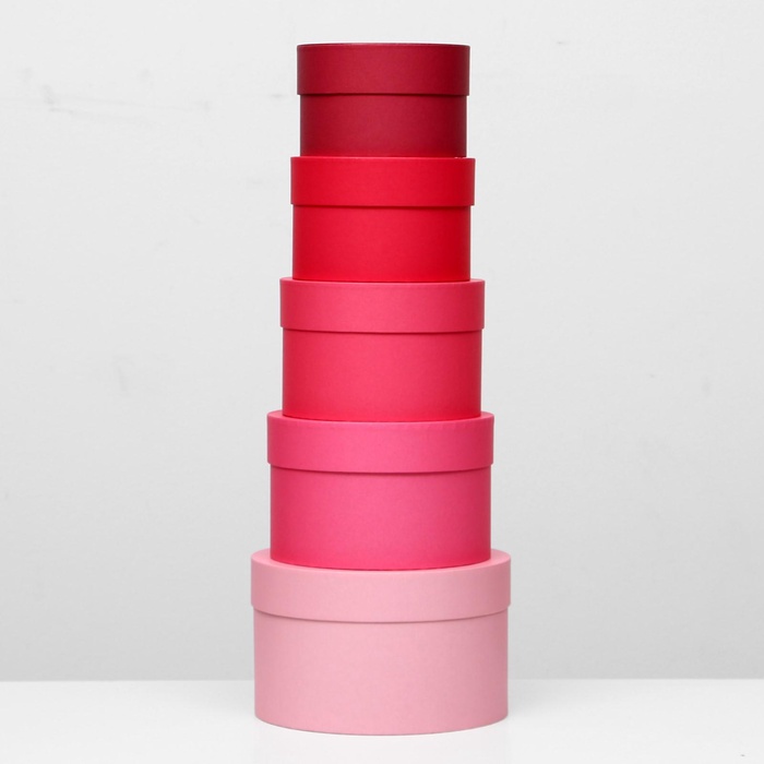 Набор круглых подарочных коробок 5 в 1 «Пантон 200», однотонный, 23×23×14 - 15×15×10 см 10 фото