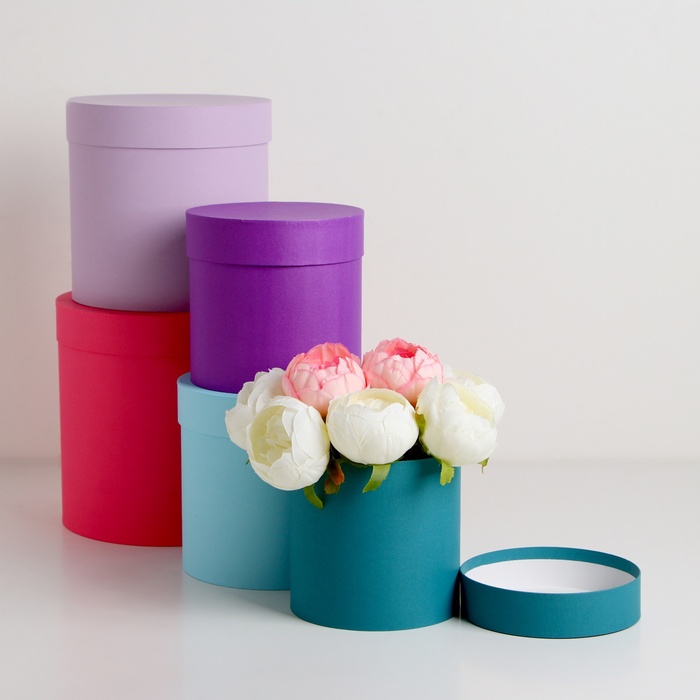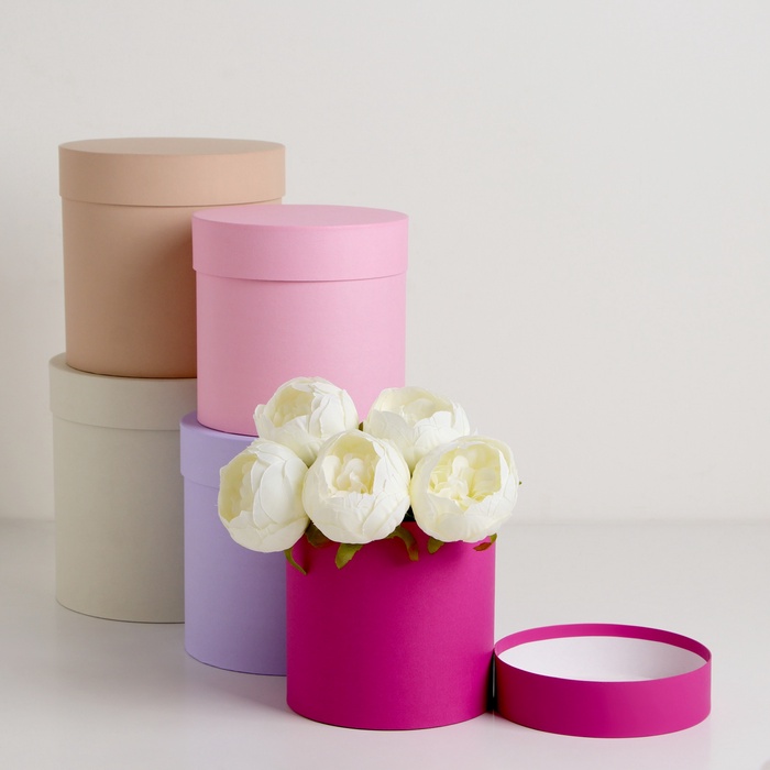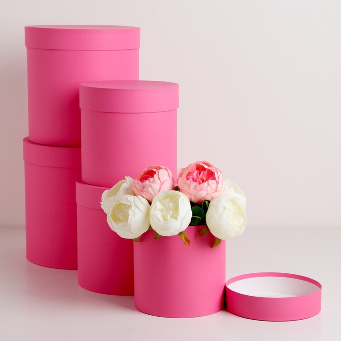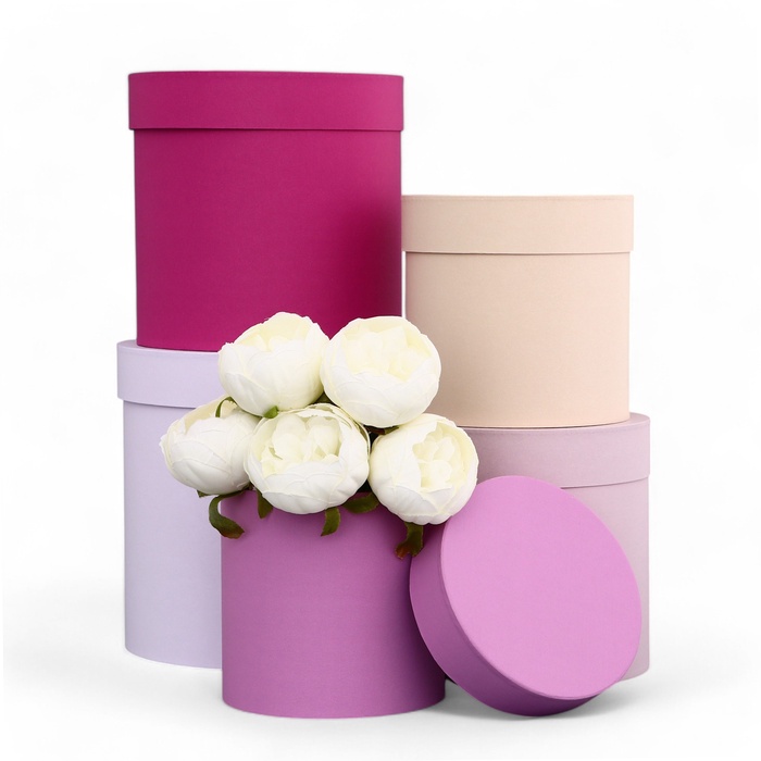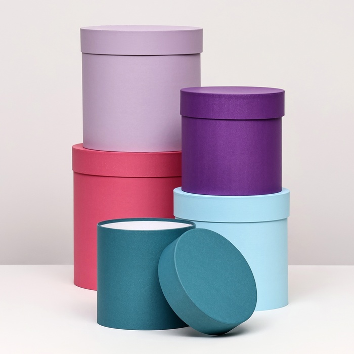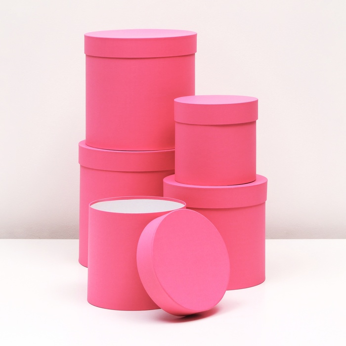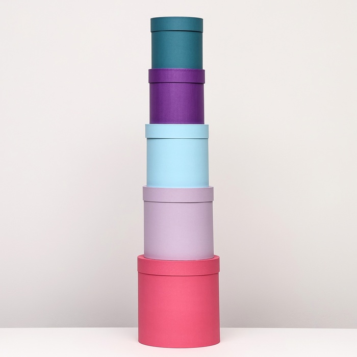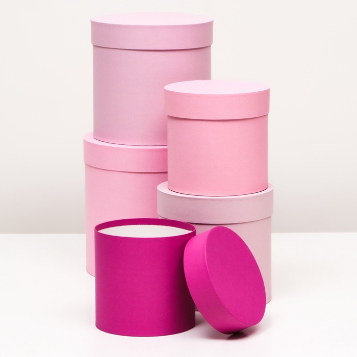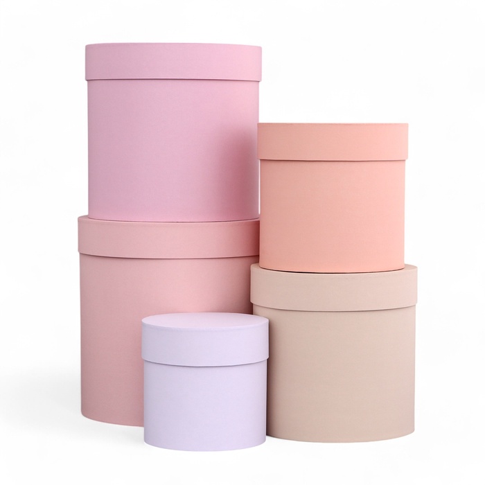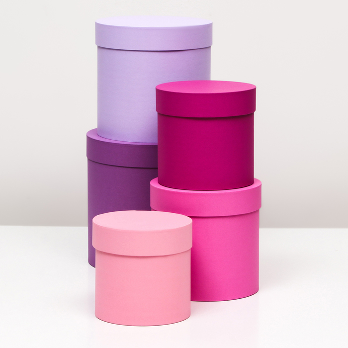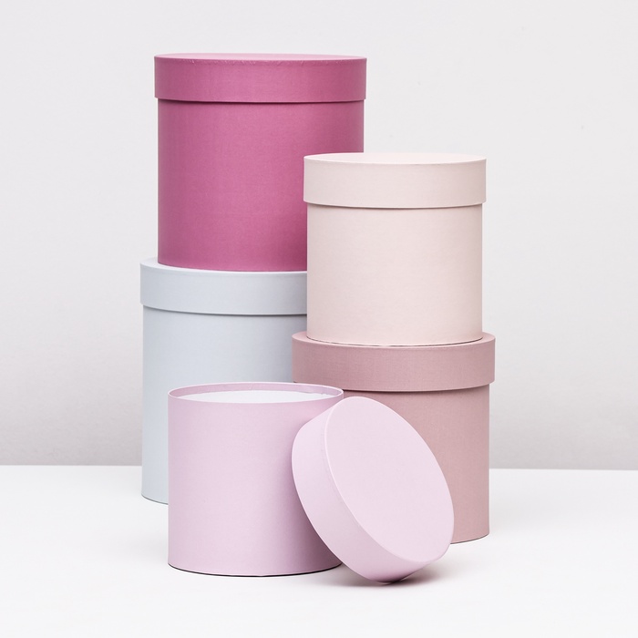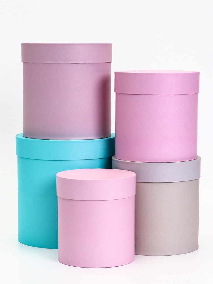 Набор круглых коробок 5в1 «Краски», розовый, 25×25×25 - 19×19×19 см 5 фото