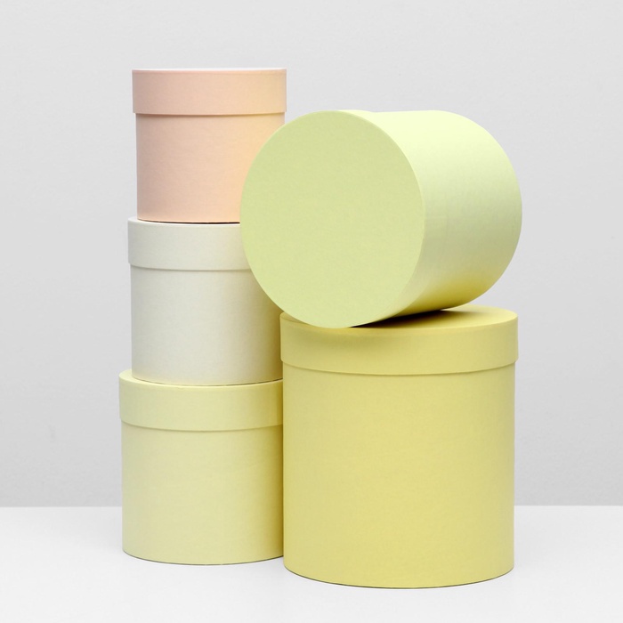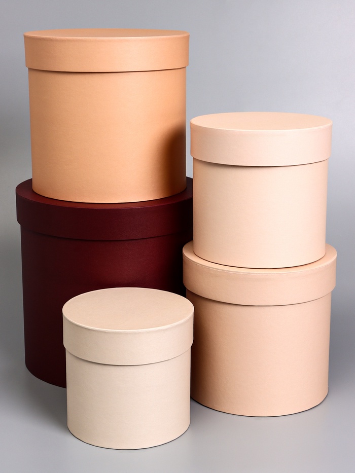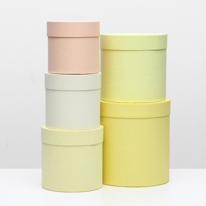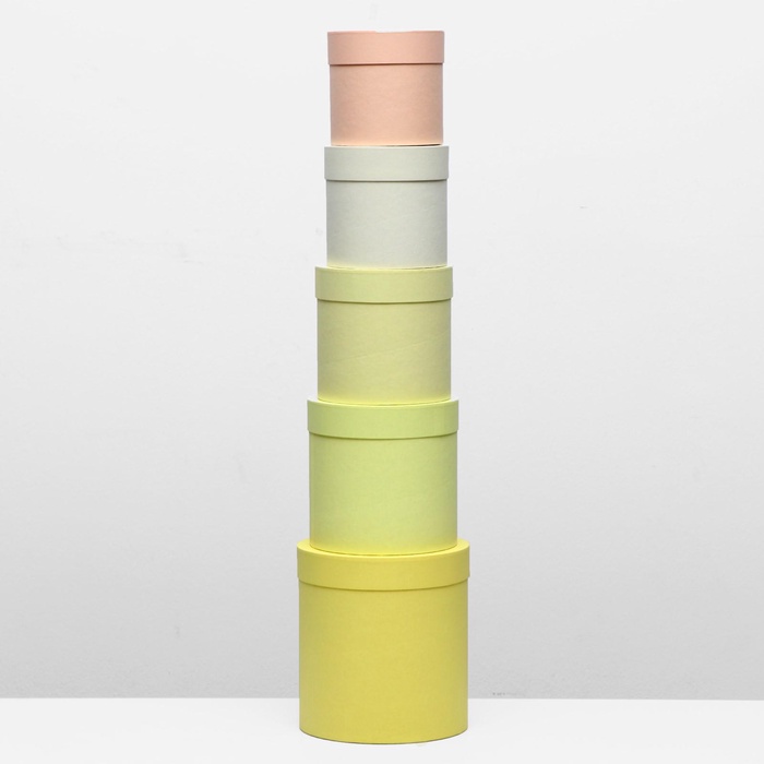 Набор круглых подарочных коробок 5 в 1 UPAK LAND, Солнечный, 23×23×25 - 15×15×15 см 5 фото