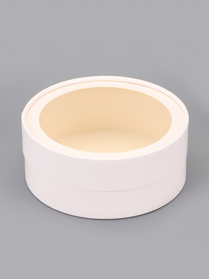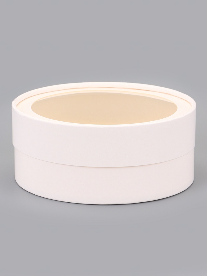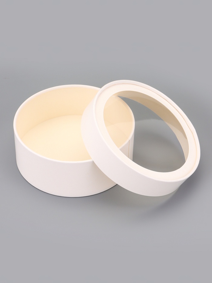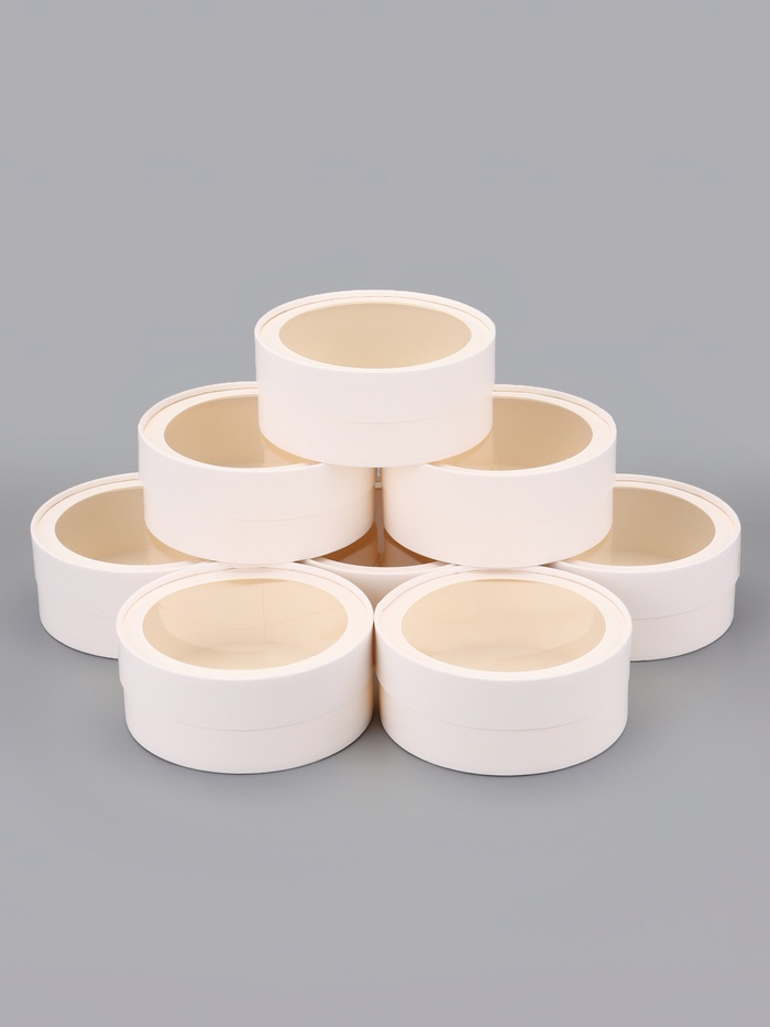 Набор круглых подарочных коробок с окном, завальцованные, белые, набор 8 шт., 15×6 см 4 фото