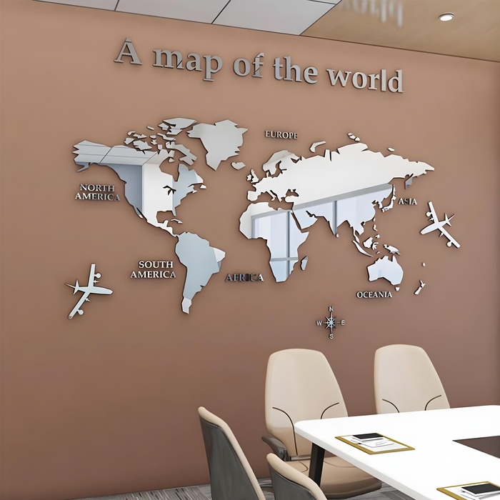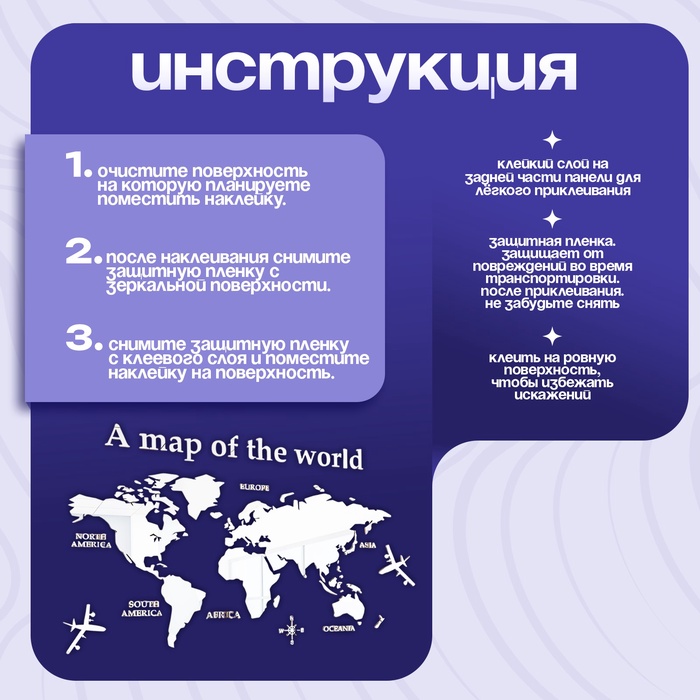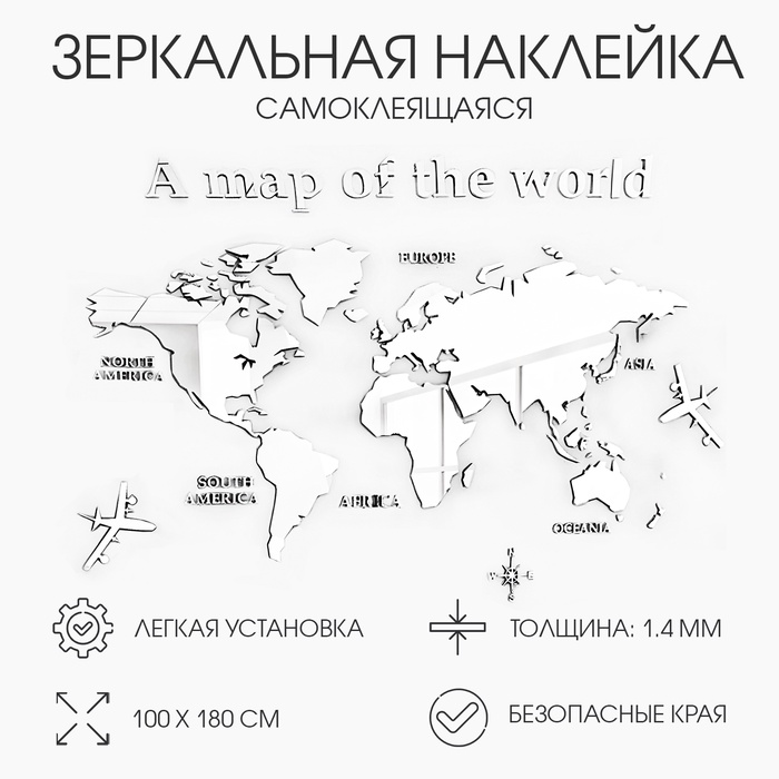 Наклейка интерьерная TAKE IT EASY «Карта мира», зеркальная, декор на стену, панно, 100×180 см 7 фото